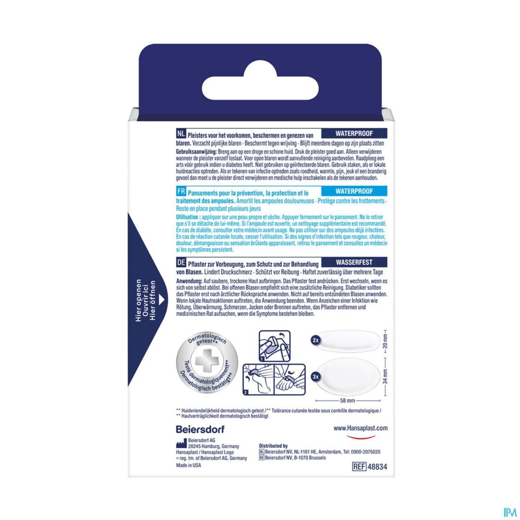 Breng aan op een droge en schone huid. Druk de pleister goed aan. Alleen verwijderen wanneer de pleister vanzelf loslaat. Voor open blaren wordt aanvullende reiniging aanbevolen