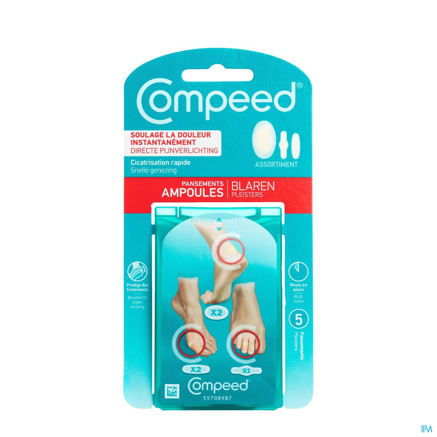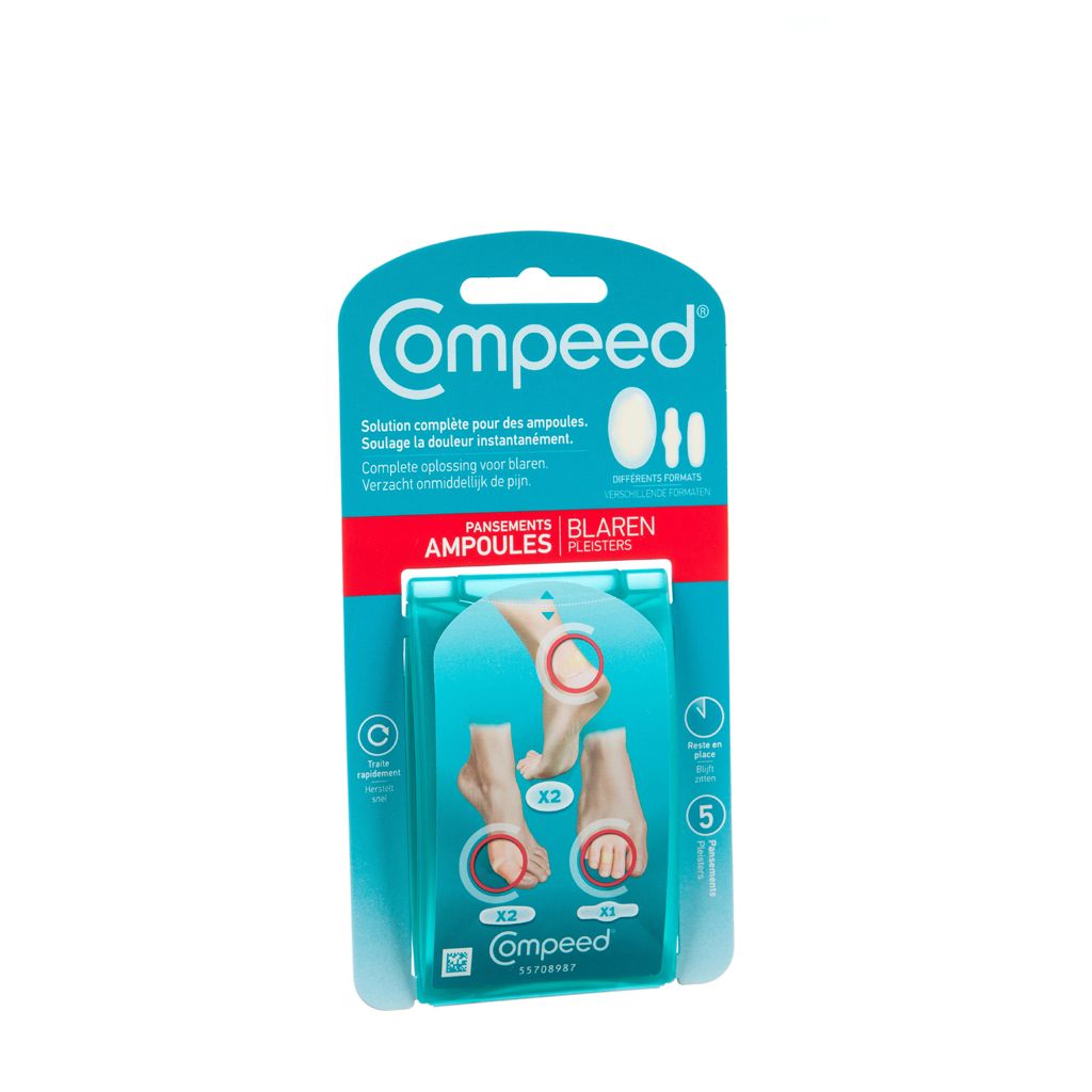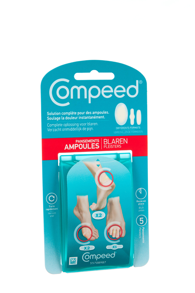 De blarenpleisters van Compeed® zorgen voor onmiddellijke pijnverlichting en een snelle genezing. Het gelkussentje verspreidt de druk op de blaar en neemt tegelijk de wrijving weg. De hydrocolloïdgel in de pleister neemt overtollig vocht op en zorgt voor de beste omstandigheden voor het herstel van de huid.