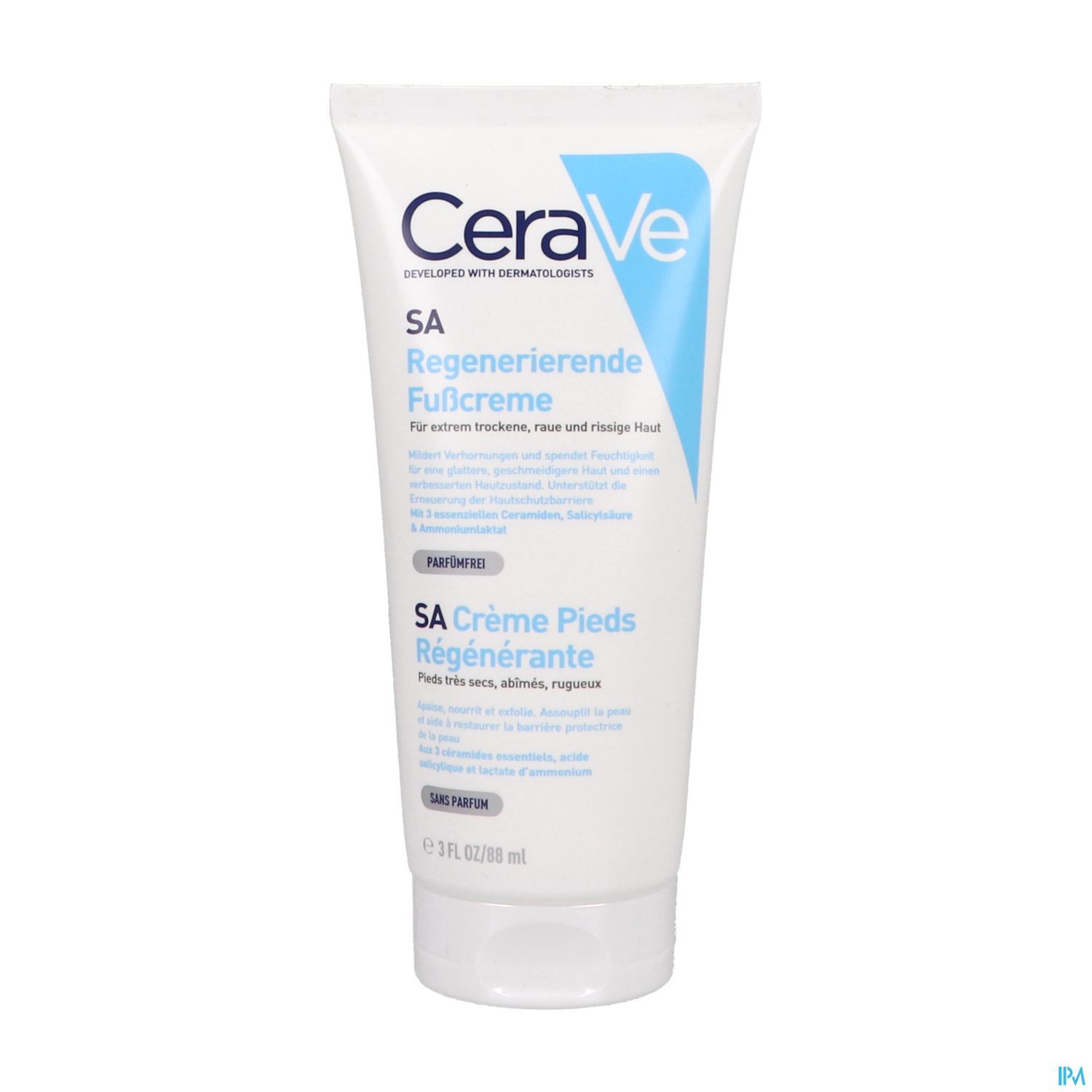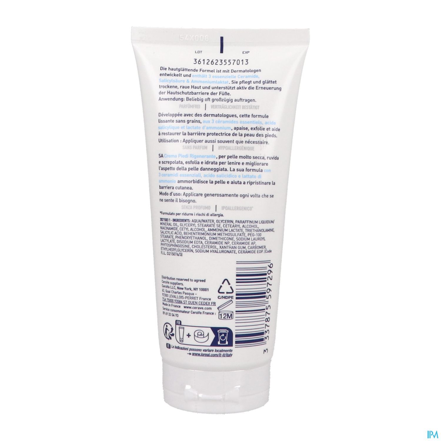 CeraVe SA Regenerating Foot Cream is een hydraterende, exfoliërende en herstellende behandeling voor droge, zeer droge, beschadigde en ruwe voeten. Het verzacht en verbetert de textuur van de huid die gebarsten, gebarsten of kloven kan hebben. Geformuleerd met salicylzuur (BHA), exfolieert het en helpt het dode cellen en schilfers te verwijderen. Bovendien bevat het ammoniumlactaat dat de hydratatie bevordert en keratinisatie van de opperhuid voorkomt, voor een gladdere en gehydrateerde huid. Het is ook verrijkt met 3 essentiële ceramiden om de huidbarrière te herstellen, met hyaluronzuur om de huid gehydrateerd te houden en niacinamide om ontstekingen te verzachten en te verminderen. Uitgerust met MVE-technologie, die vochtinbrengende actieve ingrediënten inkapselt en continu verspreidt, hydrateert het continu gedurende 24 uur. De textuur is niet vettig en laat geen plakkerig effect achter.