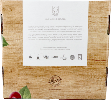De ideale metgezel in de zetel of in bed die een gezellige gelijkmatige warmte afgeeft. Gedaan met koude voeten, rugpijn, menstruatiepijn of maagkrampen,… Het is gevuld met ca 1kg kersenpitten en meet 27x27cm.