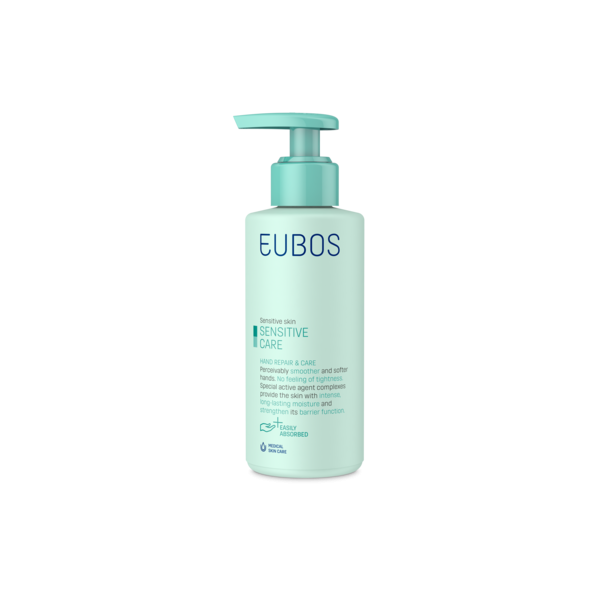 De speciale formule voor zachte en gladde handen regeneert en beschermt de natuurlijke biosfeer van de huid. Droge, ruwe handen worden weer zichtbaar zacht en soepel. De actieve werkstoffen beschermen tegen schadelijke invloeden van buiten af en voorkomen een droge en ruwe huid. Een dagelijkse verzorging van uw handen met Eubos Sensitive hand repair & care zorgt voor goed verzorgde, fluweelzachte handen. Voor de gevoelige huid.