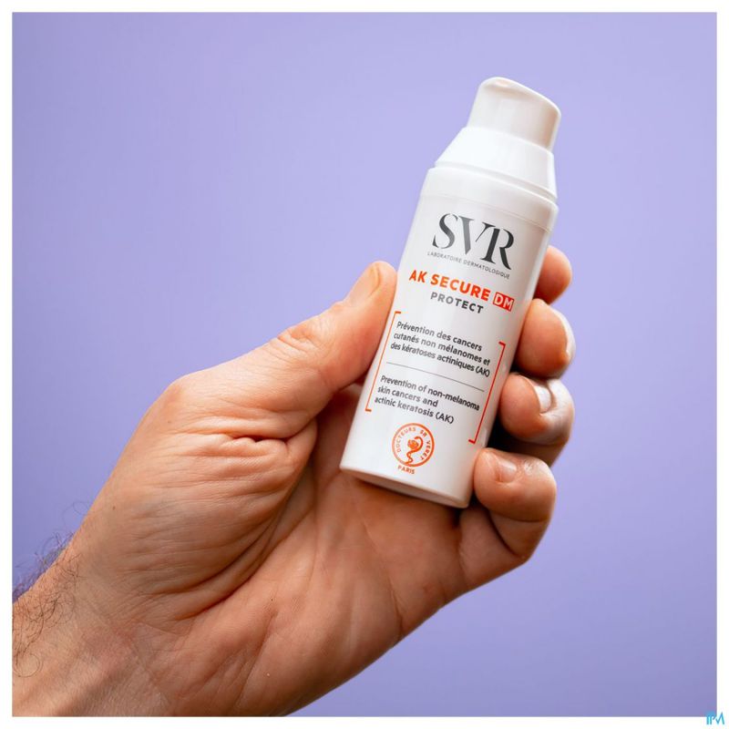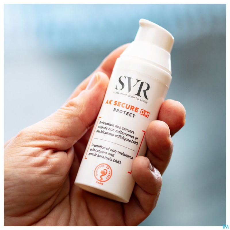 "Preventie van niet-melanomen huidkankers en actinische keratosen (AK)AK SECURE DM Protect is een medisch hulpmiddel dat is ontwikkeld voor de huid die overgevoelig is voor de zon of een risico loopt: licht fototypes I en II of immunosuppressief. In een niet-vette, niet-kleverige hydraterende textuur, biedt het een zeer hoge zonbescherming om elke dag zonneschade te voorkomen."
