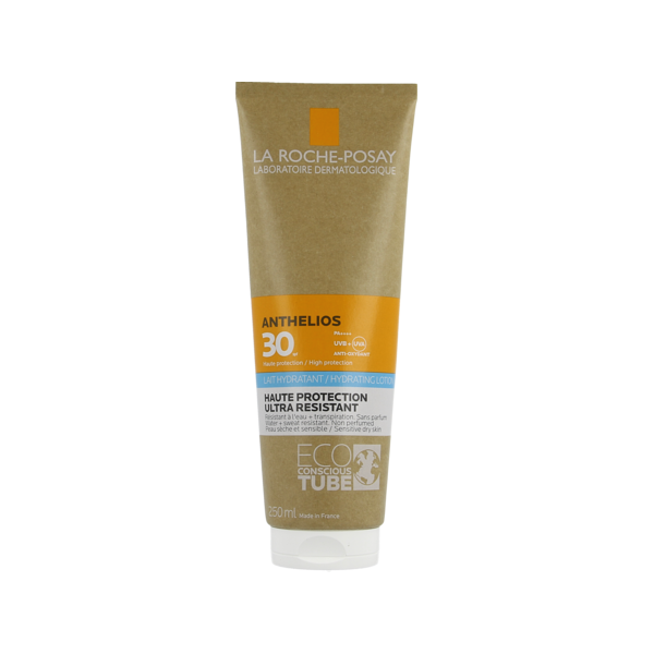 Zonnemelk met hoge bescherming SPF30 voor een zongevoelige huid of huid met neiging tot zonneallergie. Beschermt de huid tegen vroegtijdige tekenen van huidveroudering en biedt een zeer hoge breedspectrum bescherming. Met een plastic tube met 45% minder plastic.
