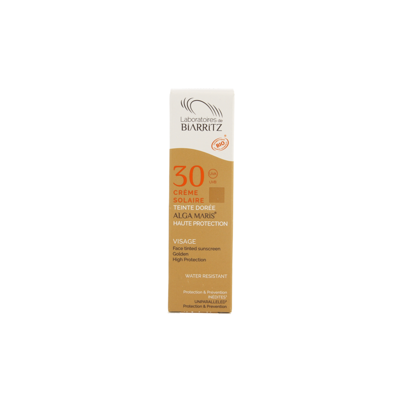 ALGAMARIS CREME SOLAIRE VISAGE TEINTEE DOREE SPF30 / ALGAMARIS GOLDEN SHADE FACE SUNSCREEN SPF30 INGREDIENTS : Aqua, Coconut Alkanes, Caprylic/Capric Triglyceride, Titanium Dioxide, Sorbitan Olivate, Zinc Oxide, Talc, Silica, Glycerin**, Polyglyceryl-2 Dipolyhydroxystearate, Octyldodecanol, Coco-Caprylate/Caprate, CI 77492, Parfum, Alumina, Polyglyceryl-3 Diisostearate, Stearic Acid, Glyceryl Caprylate, Magnesium Sulfate, Gelidium Sesquipedale Extract, Aloe Barbadensis Leaf Juice Powder*, Potassium Olivoyl PCA, CI 77491, Maris Aqua, CI 77499, Sodium Benzoate, Potassium Sorbate, Tocopherol, Jojoba Esters, Trihydroxystearin, Helianthus Annuus Seed Oil, Sodium Hydroxide 99.6 % du total des ingrédients sont d'origine naturelle /