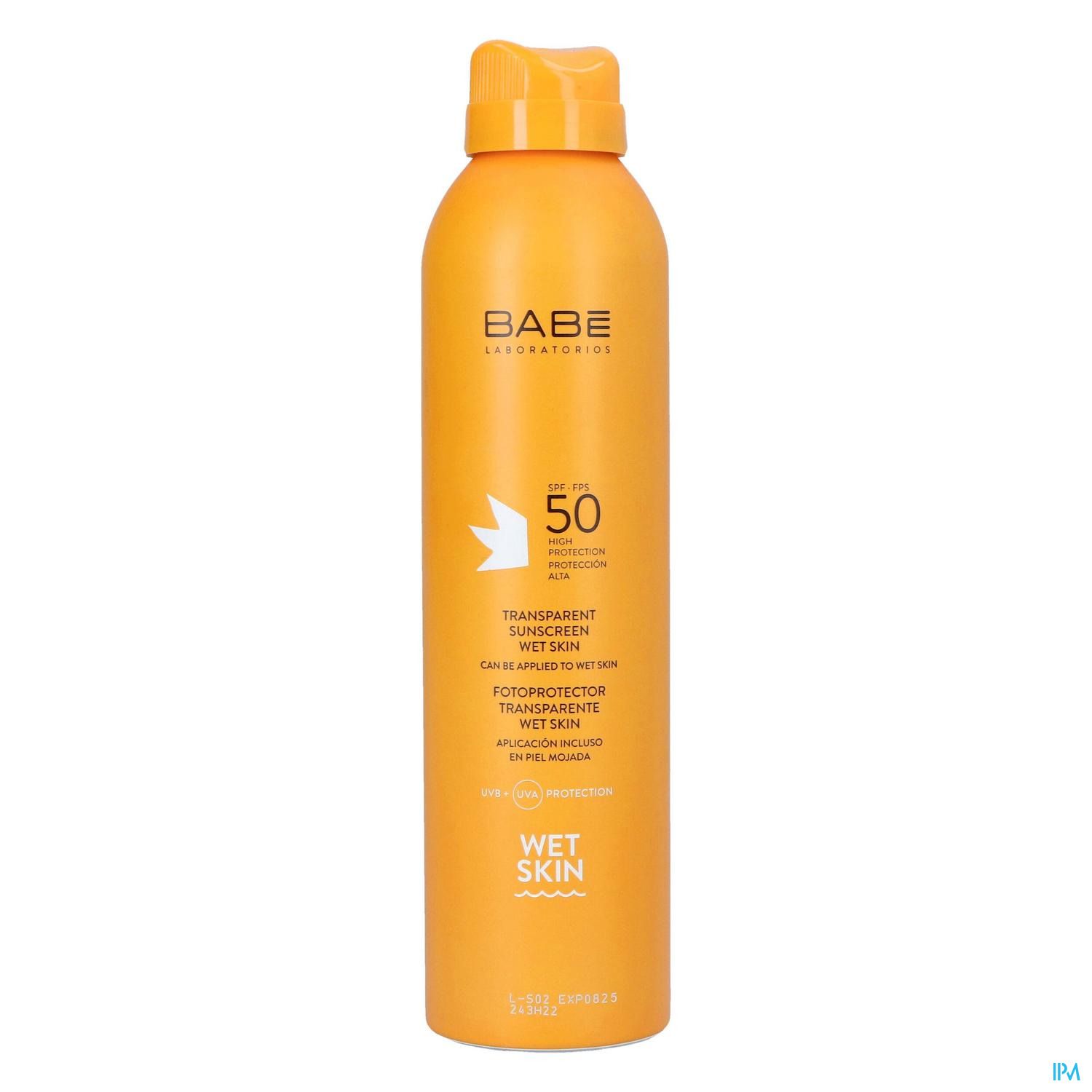 Transparante zonnebescherming spray SPF 50, Wet Skin-technologie.