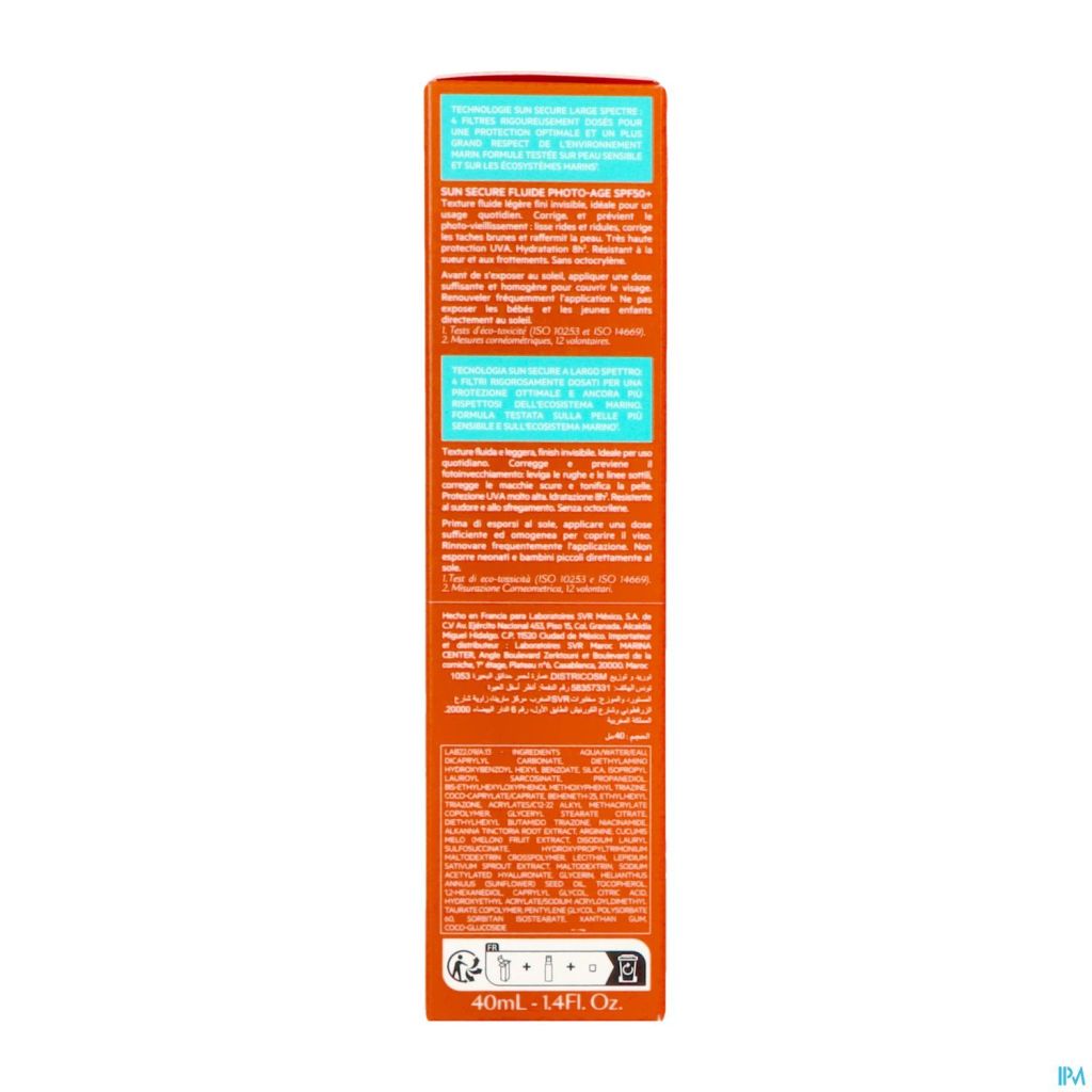 Een lichte vloeistof met een onzichtbare finish om de tekenen van fotoveroudering dagelijks te corrigeren en te voorkomen. Sun Secure Fluide Photo-Age SPF50+ combineert een zeer hoge versterkte dermatologische breedspectrum- en UVA-bescherming* met antiverouderende actieve ingrediënten om fijne lijntjes en rimpels glad te strijken, pigmentvlekken te corrigeren en de huid te verstevigen. Parfumvrije formule.