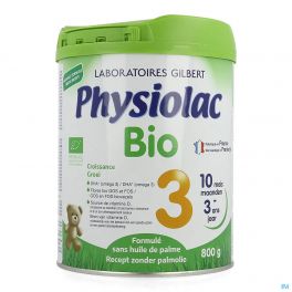 Physiolac Bio 3, geformuleerd zonder palmolie en gecertificeerd biologisch.