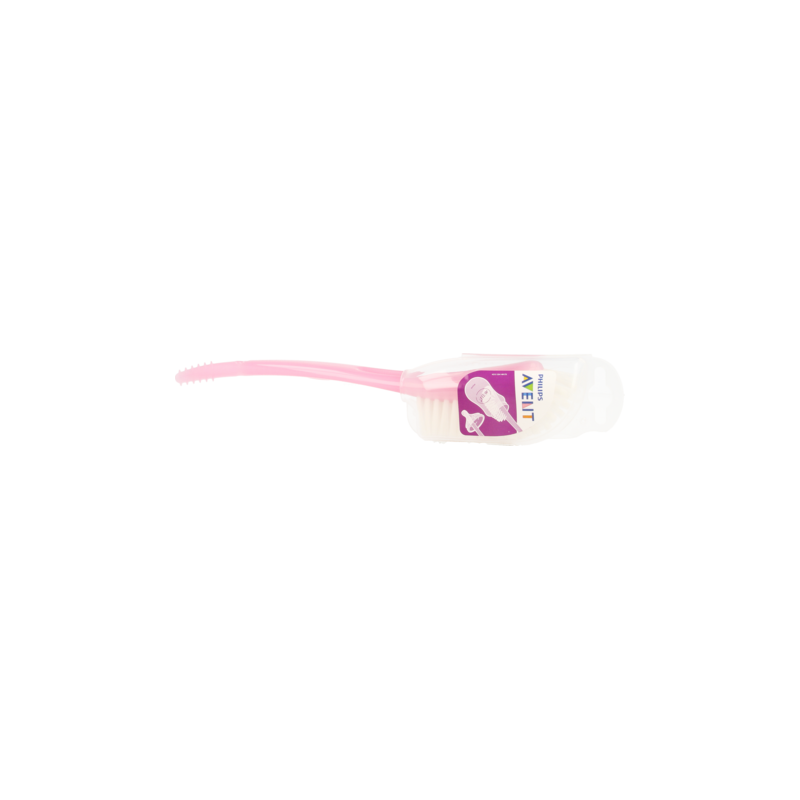 Met de speciaal gebogen borstel en het geribbelde uiteinde kun je alle hoekjes van alle flessen met een wijde hals, spenen en voedingsproducten bereiken en deze grondig reinigen.