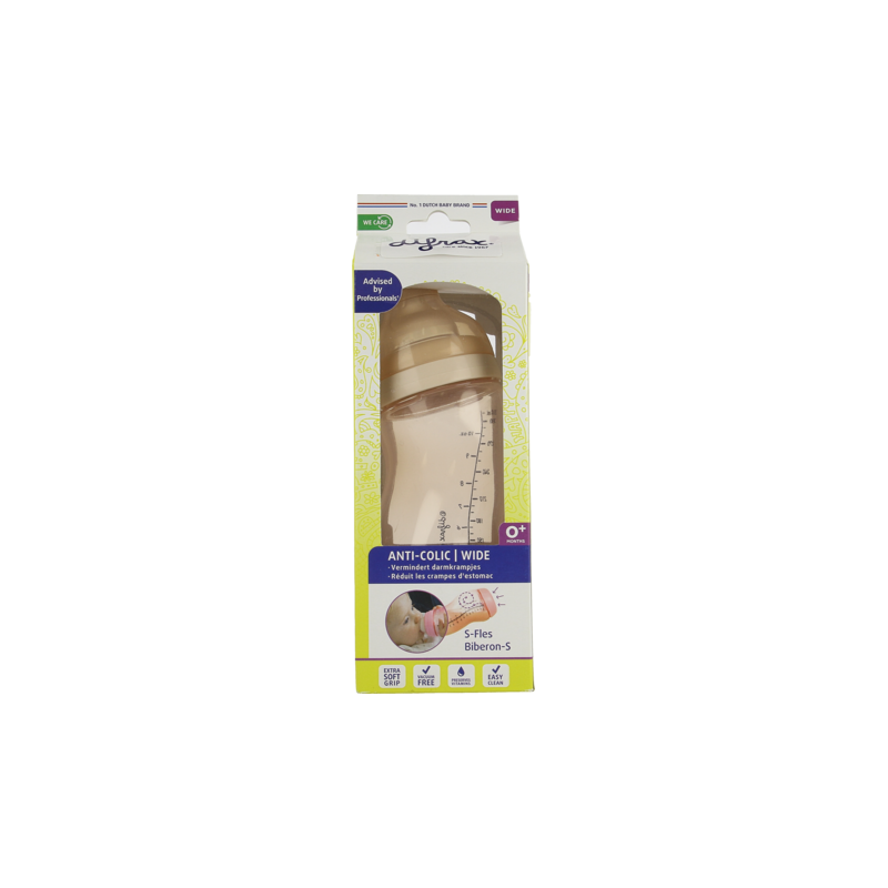 De Difrax S-fles Wide 310 ml is de populairste babyfles voor baby, papa en mama. Het speciale anti-darmkrampjes ventiel en de S-vorm zorgen voor een constante stroom van flesvoeding. De S-fles Anti-colic is vanaf de geboorte te gebruiken en ideaal in combinatie met borstvoeding. Ook fijn als papfles te gebruiken.