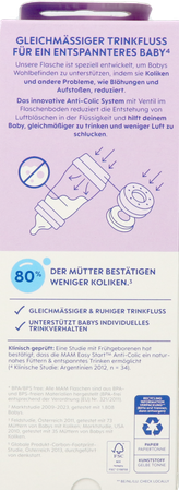 Het MAM Easy Start™ Anti-Colic-flesje is het ideale babyflesje voor flessenvoeding aan pasgeborenen: baby's kunnen drinken in hun eigen tempo en op een ontspannen manier.