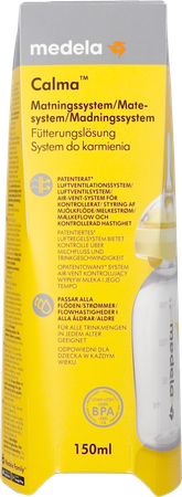 Het Calma™-voedingssysteem van Medela heeft een gepatenteerd luchtventilatiesysteem dat de melk alleen laat stromen als de baby zuigkracht creëert. Het is geschikt voor alle leeftijden, maakt het aanpassen van de melksnelheid overbodig en past op alle Medela-flessen.