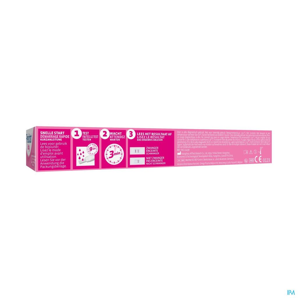 Vroege zwangerschapstest waarmee reeds vanaf 6 dagen voor de menstruatie uitblijft getest kan worden.